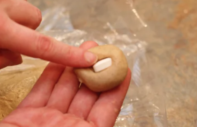 This simple and inexpensive 2 ingredient recipe makes enough dough to cover 14 to 20 pills.